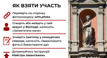 09.08.2021 16:09759Запрошуємо всіх бажаючих до участі у конкурсі «Вікі любить пам’ятки»З 1 по 30 вересня відбудеться найбільший у світі міжнародний фотоконкурс об’єктів культурної спадщини «Вікі любить пам’ятки». В Україні конкурс пройде вже вдесяте. Мета проєкту – зібрати світлини... -