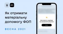 28.04.2021 16:40597Інформація для ФОПів та найманих працівників:як отримати матеріальну допомогу через портал «Дія»Для цього Вам потрібно здійснити декілька кроків. Зокрема: • Зареєструватися або авторизуватися в кабінеті громадянина на diia.gov.ua за допомогою електронного підпису або BankID. • У розділі «... -